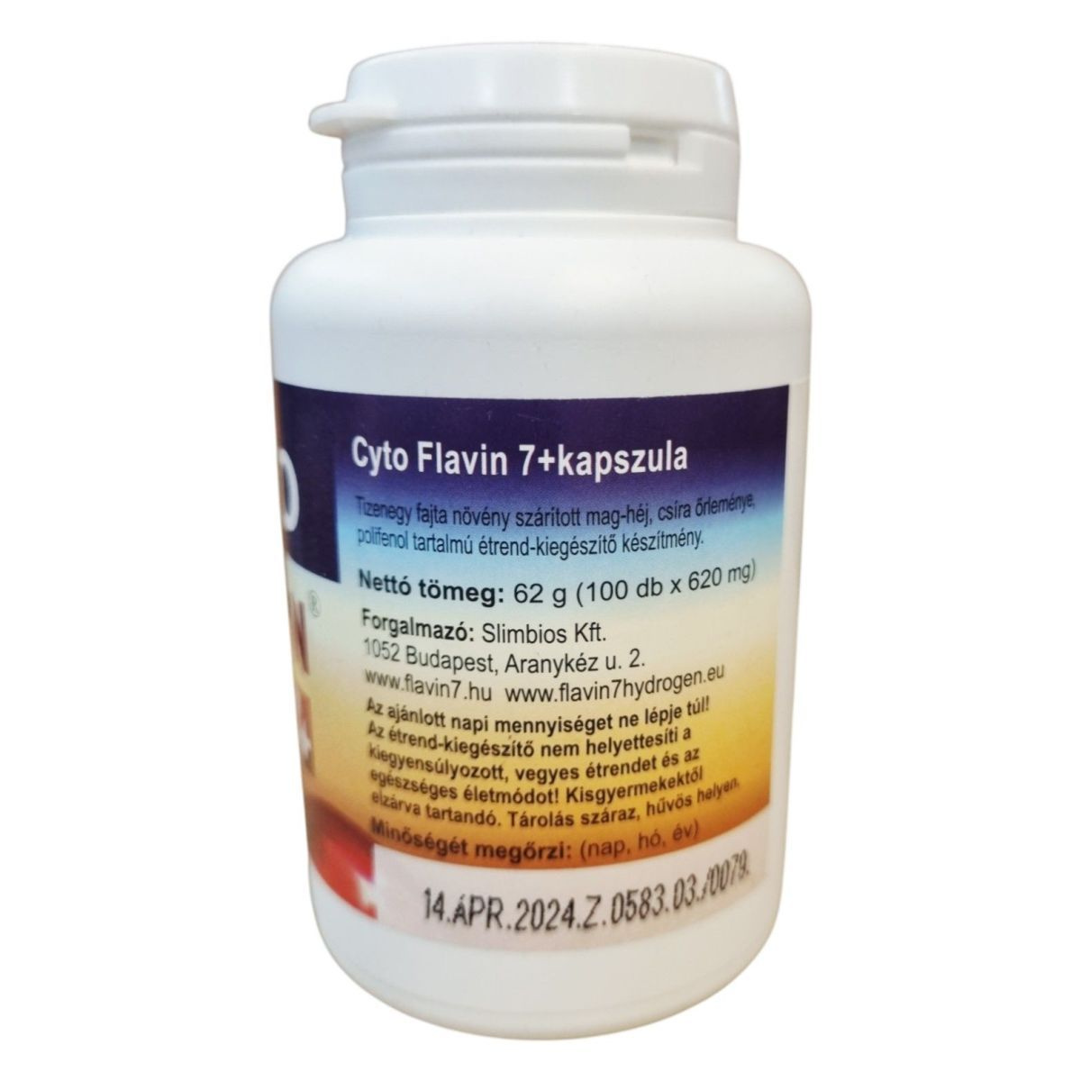 A Cyto Flavin 7+ kapszula egy polifenol tartalmú étrend-kiegészítő, amely tizenegy különböző növény szárított mag-héj és csíra őrleményét tartalmazza. A termék célja, hogy hozzájáruljon a szervezet antioxidáns védelméhez. A kapszulák HPMC alapúak, és többek között szőlőmag, bodza, és más gyümölcsök héjának szárítmányát tartalmazzák. A termék forgalmazója a Slimbios Kft., és a termék tárolása száraz, hűvös helyen javasolt.