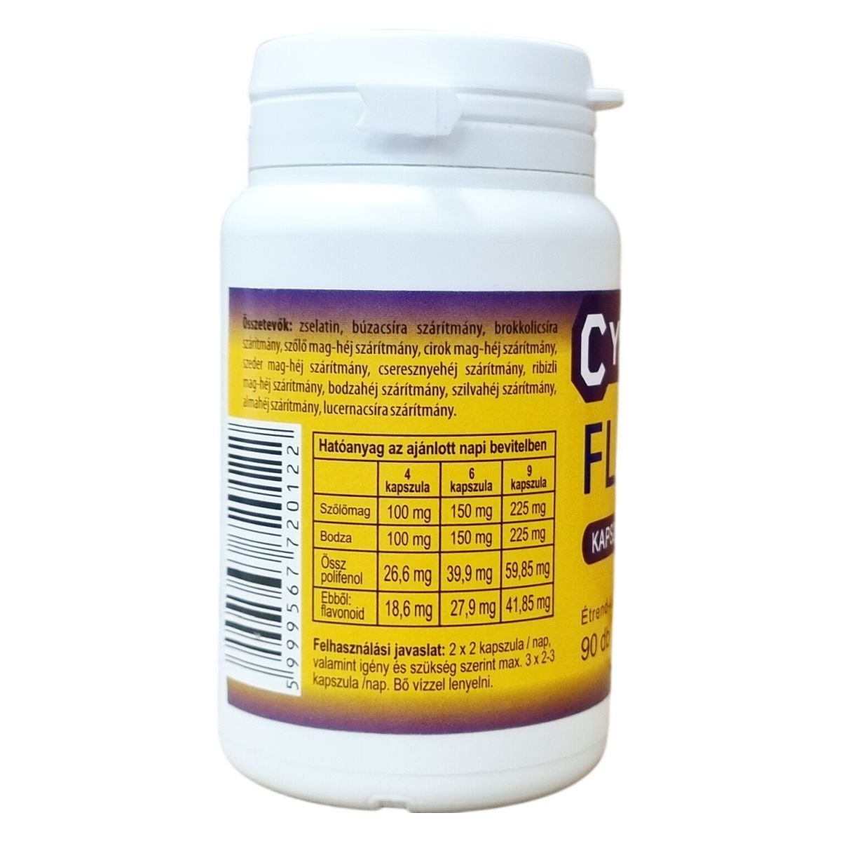 A Cyto Flavin7+ kapszula összetétele 90 darab, egyenként 376 mg-os kapszulát tartalmaz, amelyek zselatin bevonattal készülnek. A termék összetevői között megtalálhatók különböző növényi magok, héjak és csírák szárított őrleményei, melyek polifenol és flavonoid tartalma hozzájárulhat az étrend kiegészítéséhez. A készítmény többféle maghéjat és csírát tartalmaz, így változatos forrásból nyújthatja ezeket a természetes összetevőket. Használata a megadott adagolás szerint ajánlott, nagy mennyiségű víz kíséretében. A termék felnőttek számára készült, és nem helyettesíti a kiegyensúlyozott étrendet vagy az egészséges életmódot.