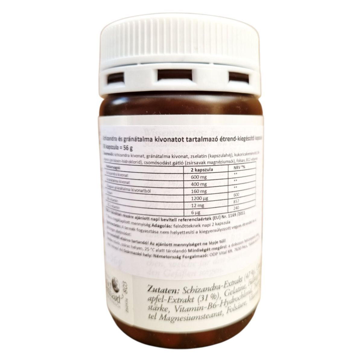 Ez a termék schizandra és gránátalma kivonatot tartalmaz, amelyek hozzájárulhatnak a szervezet antioxidáns védelméhez. A B6-, B12-vitamin és folsav támogathatják az immunrendszer normál működését.