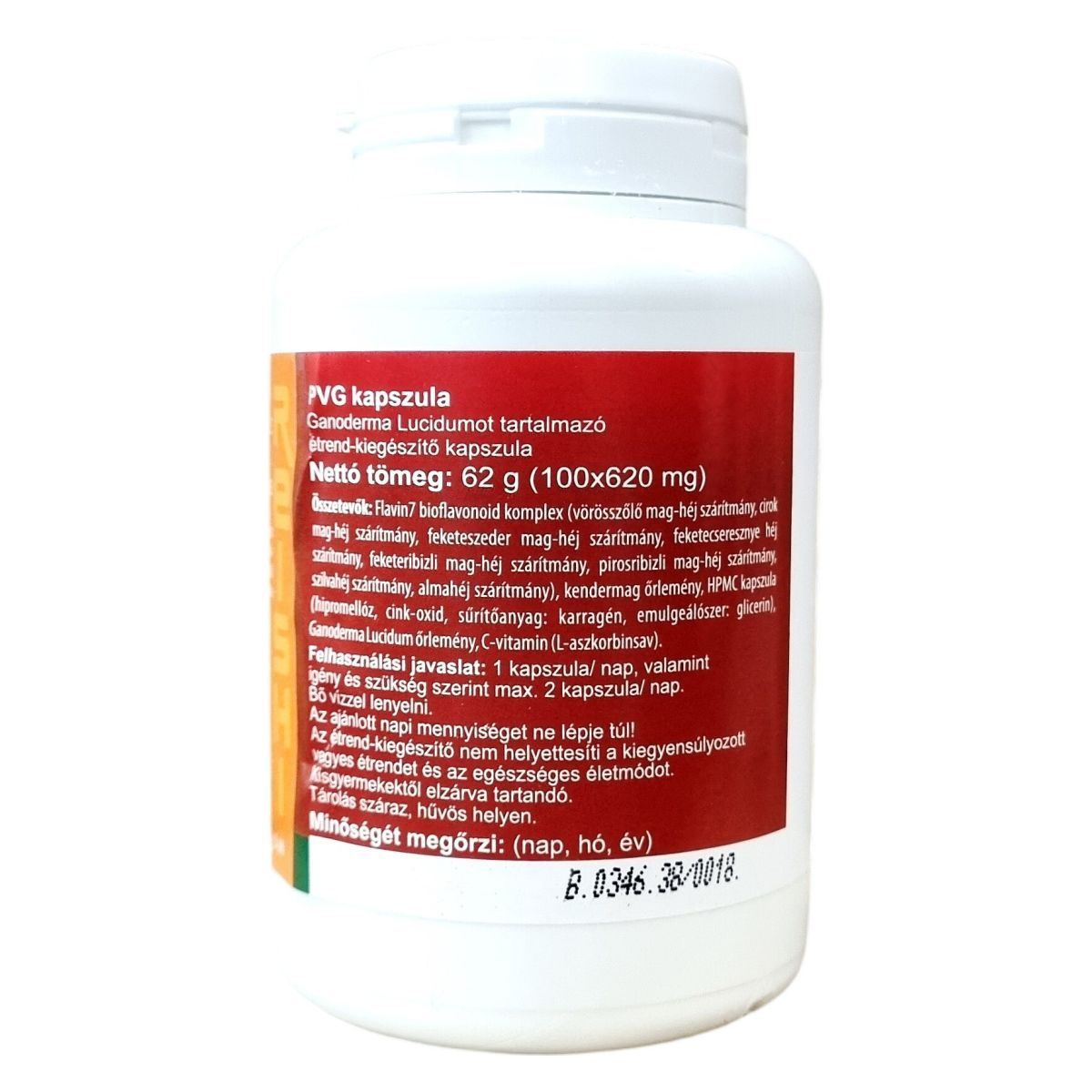 A termék 100 darab, 620 mg-os kapszulát tartalmaz, nettó tömege 62 g. A kapszula összetevői között megtalálható a Flavin7 bioflavonoid komplex, amely különféle gyümölcsmag- és héj szárítmányokat egyesít, valamint kendermag őrlemény, hipromellóz alapú kapszula, cink-oxid, természetes sűrítő- és emulgeálószerek. A készítmény fő anyaga a Ganoderma Lucidum őrlemény, amelyet a pecsétviaszgomba néven is ismert Reishi gomba alkot, illetve C-vitamint is tartalmaz. A kapszulák fogyasztása során ajánlott a bő víz, a biztonságos és hatékony alkalmazás érdekében. A termék használata mellett a kiegyensúlyozott étrend és az egészséges életmód fenntartása javasolt.