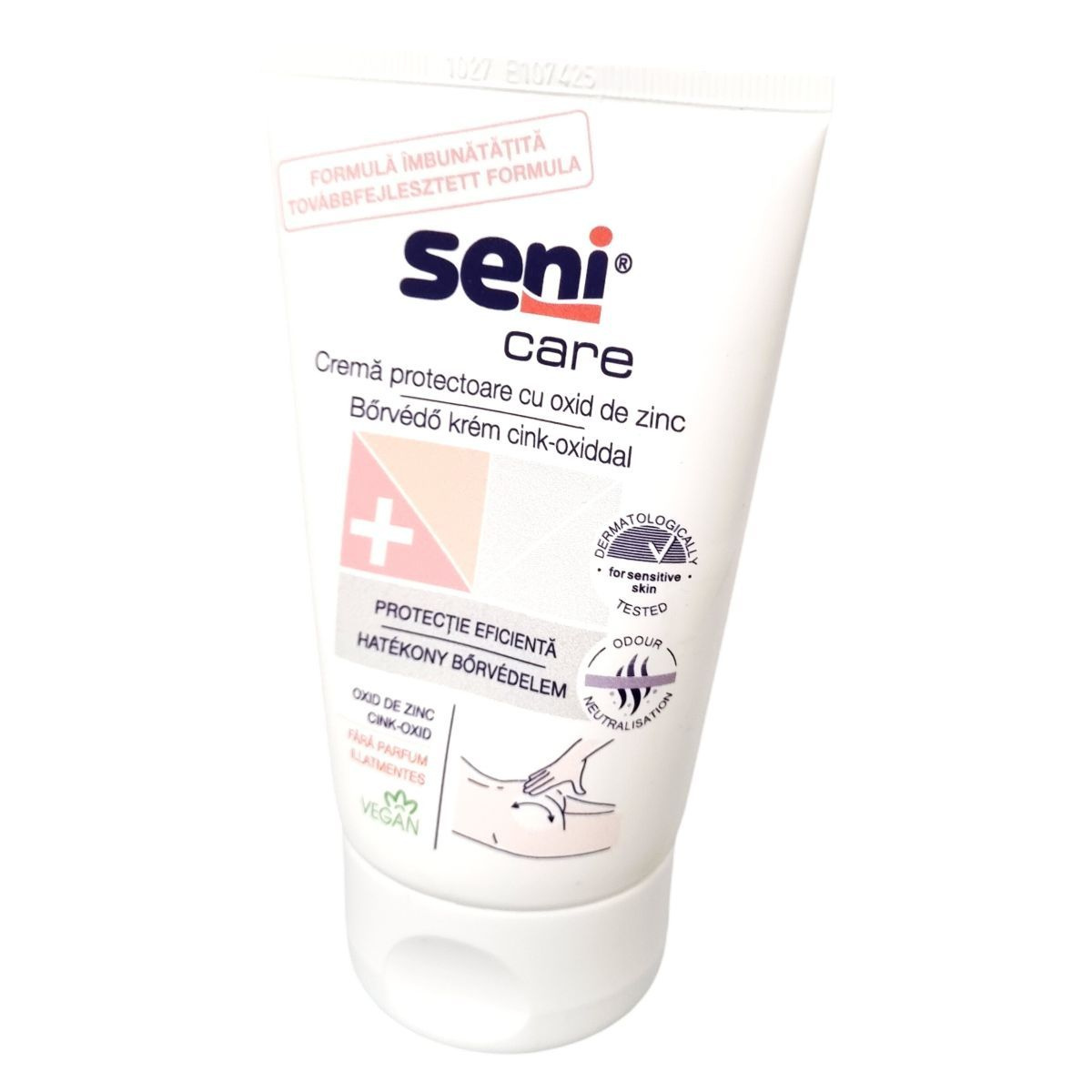 A Seni Care bőrvédő krém cink-oxiddal a kipirosodásra hajlamos, érzékeny bőr gyengéd ápolására szolgálhat. Használata különösen javasolt fekvőbetegek és inkontinenciával élők számára, akiknél a bőr irritációra és felfekvésre hajlamos. A cink-oxid védőréteget képezhet a bőrön, amely óvhatja az irritatív külső hatásoktól, miközben a shea vaj, az olívaolaj és a panthenol nyugtathatja és hidratálhatja a bőrt. Vízmentes, könnyen eloszlatható formulája nem irritálhat, és természetes eredetű szagsemlegesítőt tartalmaz, amely hozzájárulhat a kellemetlen szagok csökkentéséhez. Dermatológiailag tesztelt, vegán, illatmentes kozmetikum, mely kíméletes gondoskodást biztosíthat az érzékeny bőr számára.