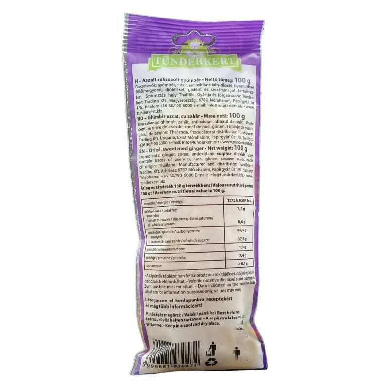 Összetevők: cukor, gyömbér, tartósítószer: kén-dioxid.