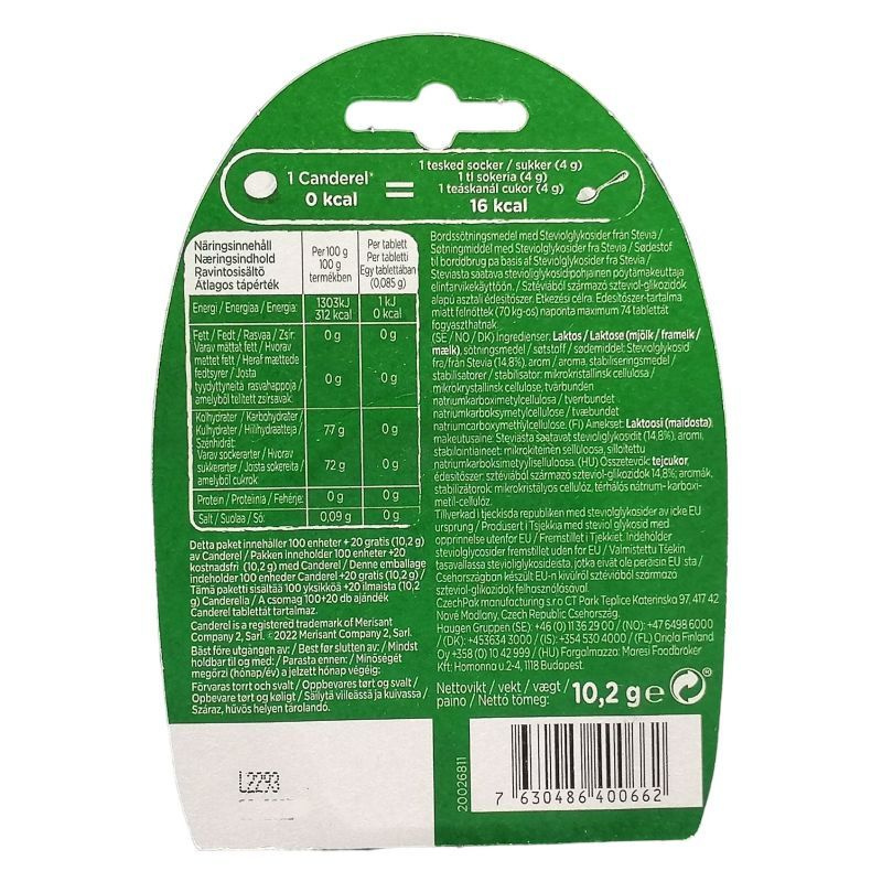 Szteviol glikozid alapú, szinte kalóriamentes asztali tablettás édesítőszer. Sütéshez és főzéshez valamint forró italok édesítésére kiválóan alkalmas (rendkívül jól ellenáll a hőnek) Nem vált ki glikémiás reakciót, azaz nem okoz vércukorszint-emelkedést, nem növeli a szervezet inzulinszintjét sem, így a cukorbetegek diétájába kiválóan beilleszthető.