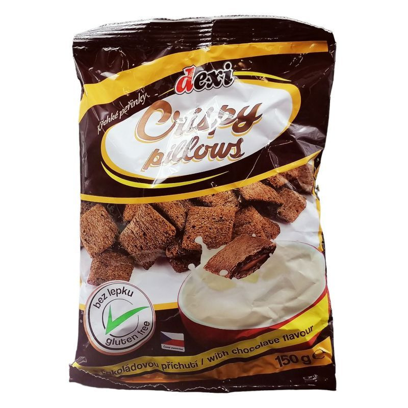Dexi extrudált crispy pillows csokoládé ízű párnák: egy kiváló reggeli részeként, vagy nassolni valóként is megállja a helyét. Csokoládés ízesítésű. 150 g
