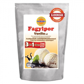 Csökkentett szénhidráttartalmú fagylaltpor édesítőszerrel diétás étkezés megvalósításához. Egy csomag fagylaltpor tartalma kb. 24 gombóc fagylalt elkészítésére alkalmas. Használata fagylalthoz: 2 dl hideg tejet egy edénybe öntünk, hozzáadunk 70 g fagylaltport, és kézi mixerrel először alacsony, majd magasabb fordulaton felverjük, kb. 3 perc alatt a krém állag eléréséig. A fagylaltmasszát poharakba öntjük, és mélyhűtőben a kívánt keménységűre fagyasztjuk. Fagylaltgépben is elkészíthető.