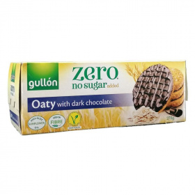 Étcsokoládés zabkeksz édesítőszerrel, hozzáadott cukrot nem tartalmaz.