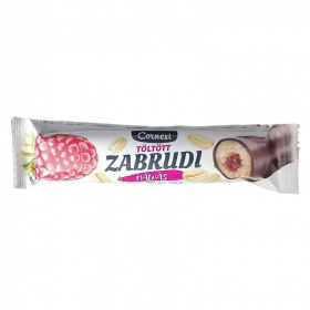 Összetevők: zabpehely 34%, kakaós bevonómassza 17% [cukor, részben hidrogénezett növényi zsír (pálmamag) zsírszegény kakaópor 15%, emulgeálószerek: lecitinek és poliglicerin-poliricinoleát, aroma], málnás töltelék 14% [cukor, fruktóz-glükózszörp, alma püré, málna püré 12%, zselésítőanyag: pektinek, étkezési sav: citromsav, feketerépalé koncentrátum, aroma], glükózszirup, fruktóz-glükózszörp, növényi zsír (pálma) zabpehelyliszt, nedvesítőszer: glicerin, maltodextrin, emulgeálószer: lecitnek (szója), aromák, étkezési só, étkezési sav: citromsav. Nyomokban földimogyorót, dióféléket, szezámmagot és tejből készült terméket tartalmazhat!