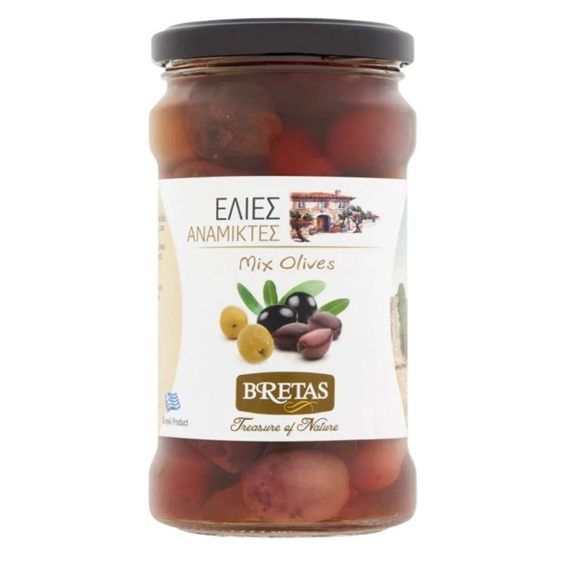 Összetétel: görög olajbogyók (kalamata, mafissa, zöld) (59,70%) ívóvíz, vörösbor ecet, tengeri só, oregano, babérlevél, savanyúságot szabályozó anyag: citromsav, tejsav.