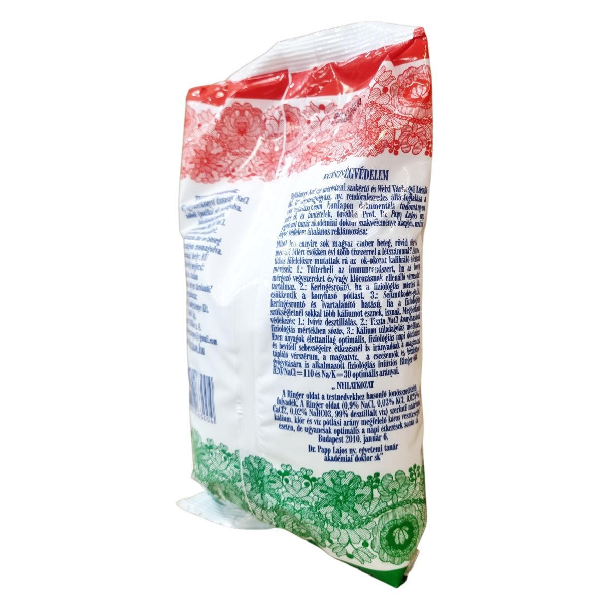 A termék gyógyszerkönyvi tisztaságú nátrium-klorid sóból készült, ami patikai sóként ismert, legalább 99,5% NaCl-t tartalmaz, és teljes mértékben adalékanyag-mentes. Magyarországon csomagolva, az Európai Unió területéről származik. Termék tisztaságát, valamint részletes összetételét a gyártó hivatalos weboldalán érhetjük el. A kiváló minőség, valamint a fiziológiás só tartalom alapján a só fogyasztása hozzájárulhat az egészséges életmód támogatásához. Az egészségvédelmi tanulmányok és szakvélemények szerint a tiszta NaCl konyhasó megfelelő fiziológiás mennyiségben történő fogyasztása fontos az immunrendszer és keringés optimális működéséhez. A só megfelelő arányban történő pótlása segít elkerülni káros hatásokat, így ajánlott a tiszta nátrium-klorid használata. A termék élvezeti és egészségvédelmi szempontból is kiemelt minőségű, mely a természetgyógyászati, orvosi szakvéleményekkel is alátámasztott.