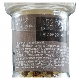 Összetevők: jódozott tengeri só (tengeri só, kálium-jodát) paprika, fokhagyma, görögszéna, vöröshagyma, bors.