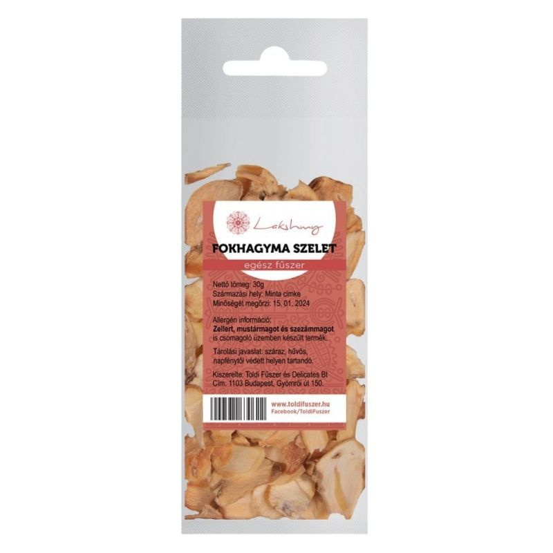 A fokhagyma gerezdek szeletelésével és lassú kíméletes szárításával készül. Erősen fűszeres és/vagy húsos ételehez ajánjuk.