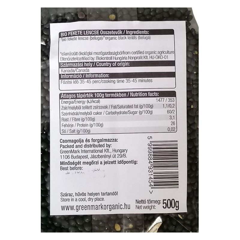 GreenMark bio fekete beluga lencse 500g