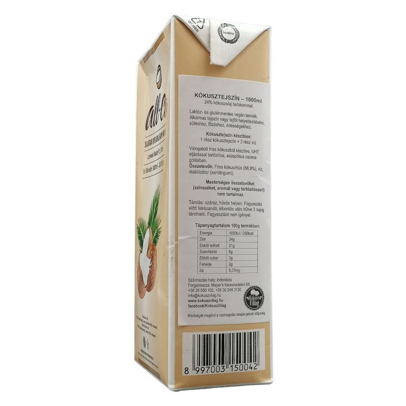 Desszertekhez, ázsiai ételekhez, fagylaltokhoz is felhasználható, minden területen ki tudjuk vele váltani az állati eredetű tejszínt. A kókuszkrém válogatott kókuszdiók húsából és vízből, pépesítéssel készül, tehát a kókuszdió minden pozitív tulajdonsága benne van ebben a kis dobozban. Íze ellenállhatatlanul aromás és ízletes, a termék pedig teljesen természetes és friss állapotában jut el Önhöz. Könnyen emészthető, magas energiatartalmú élelmiszer. Tartósítószert, adalékanyagot nem tartalmaz, a tartósítás UHT csíramentesítéssel történik a legmagasabb minőség érdekében.