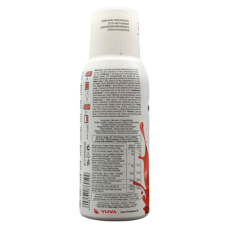12 liter kész gyümölcsitalhoz, 50% gyümölcstartalom. Hígítási arány 1:23.
