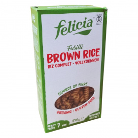 A Felicia Bio barnarizs fusilli egy organikus, gluténmentes tészta, amelyet Olaszországban gyártanak. Kiváló rostforrás, és mindössze 7 perc alatt elkészíthető. A termék 100% bio barnarizslisztből készül.