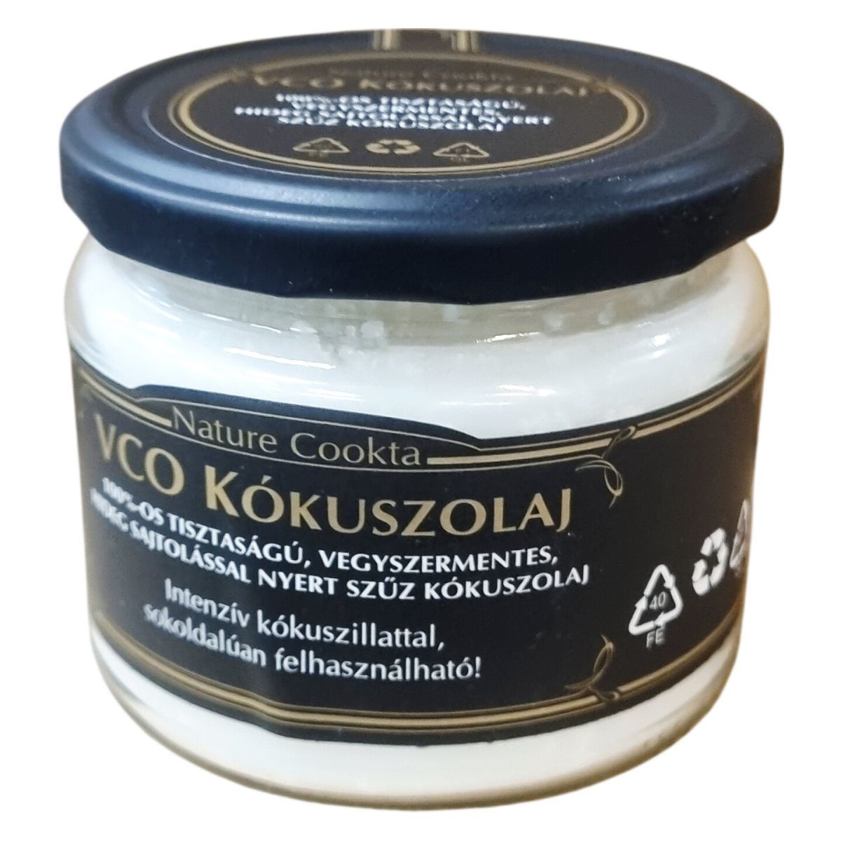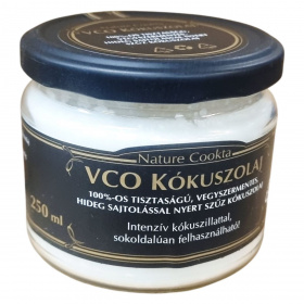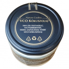 A Nature Cookta VCO kókuszolaj 100%-os tisztaságú, hideg sajtolással előállított szűz kókuszolaj, mely vegyszermentes és intenzív kókuszillattal rendelkezik. A termék 250 ml-es kiszerelésben kapható, és a minőségét a csomagoláson jelzett időpontig őrzi meg. A forgalmazó a Lechner és Zentai Kft., székhelye Budapesten található. A termék elérhető és további információk kérhetők a www.naturecookta.hu oldalon vagy az info@naturecookta.hu e-mail címen.