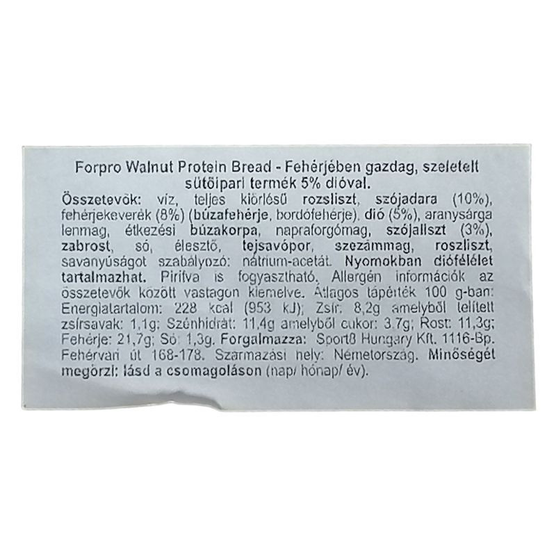 Mintenhol azt haljuk, hogy "de úgy kell a boldogság, mint egy falat kenyér". A Forpro Ptrotein Bread szeletei kivülről ropogósabbak belülről lágyak, szezámmag, lenmag és napraforgómag hozzáadásával. Ezt a kenyeret magasabb fehérjetartalmú étrendre készítették, de minden célra megfelel. 82%-kal kevesebb szénhidrátot, kevesebb cukrot tartalmaz, mint a szokásos kenyér, így segít elérni fitnesz céljaidat.