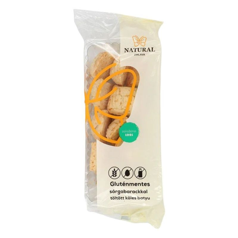 Összetevők: kukoricakeményítő, cirok liszt, guargumi, rizs szirup 8% nem hidrogénezett kókuszolaj, shea vaj, íze, millet 10%, rizsliszt, napraforgó-lecitin emulgeálószer, sárgabarack tölteléket (fruktóz, sárgabarack 25%, kukoricakeményítő, stabilizátor-gél)