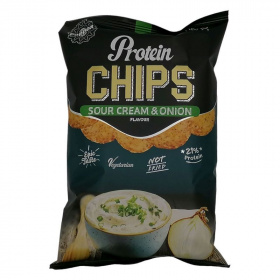 Tejföl és hagyma ízesítésű fehérje chips.