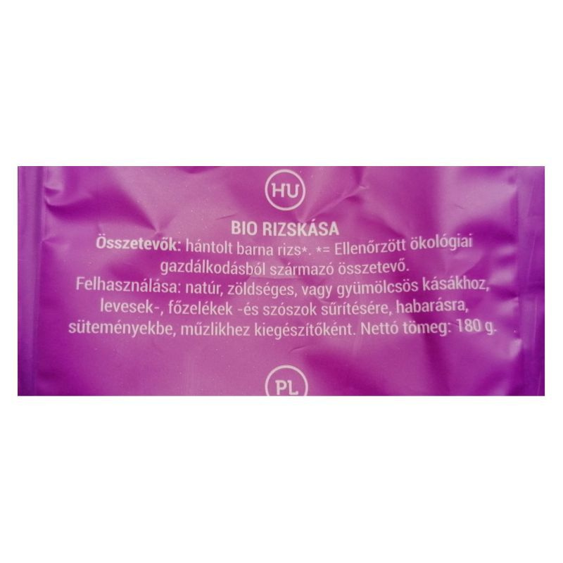 Összetevők: hántolt barna rizs*. *Ellenőrzött ökológiai gazdálkodásból származó alkotó.
