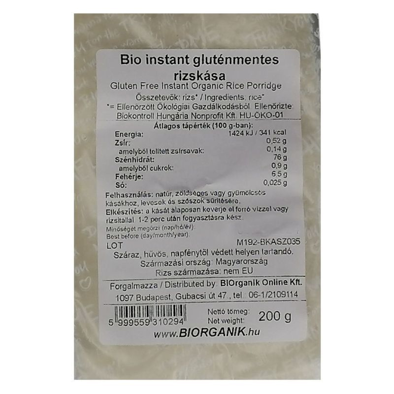 Instant gluténmentes rizskása.
