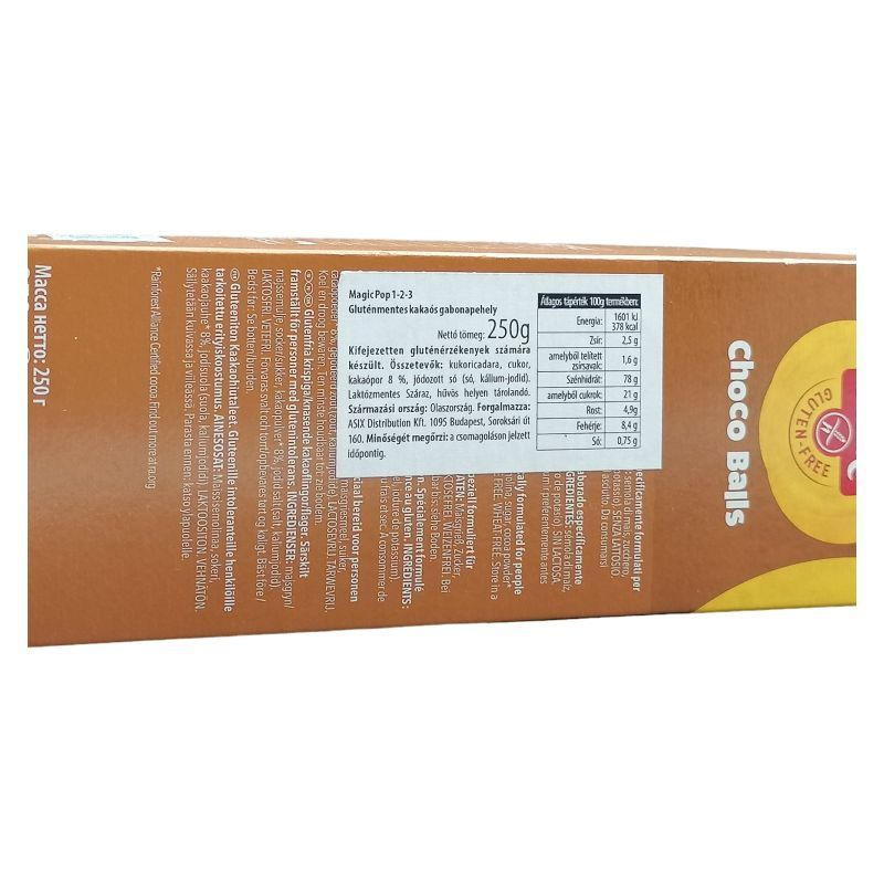 Összetevők: kukorica liszt, cukor, kakaópor 7%, méz, só, módosított tápióka keményítő.