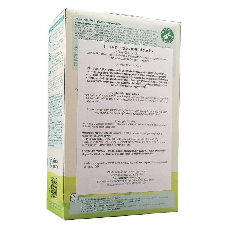 Glutén tartalmú, teljeskiőrlésű gabona, kifejezetten csecsemőknek. Főzés nélkül, tej nélkül, édesítés nélkül, egyszerűen elkészíthető.