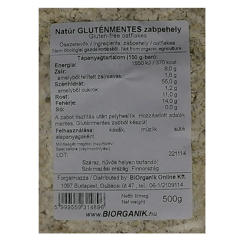 Világosbarnás, fehér gluténmentes zabpehely, hántolt, tisztított egész zabszemekből. Felhasználása kásákba, müzlikbe, süteményekbe.