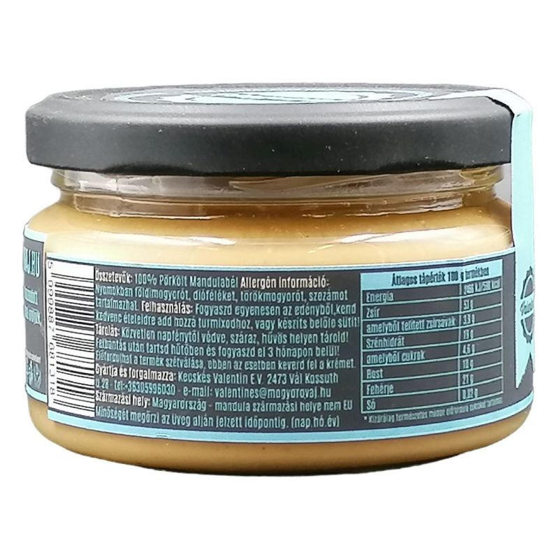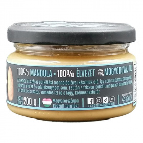 A mandulát száraz pörkölési technológiával készítjük elő, így nem tartalmaz felesleges olajat és adalékanyagot sem. Ezután a frissen pörkölt mandulát azonnal őröljük, így extra krémes állagot kapunk. Pazar, lágy ízéhez semmi sem hasonlítható. Vegán, nincs hozzáadott só, olaj vagy cukor, gluténmentes, gazdag fehérjében és rostban, laktózmentes, mindenmentes, Magyarországon készült.
