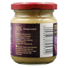 A Vegabond eredeti erdélyi padlizsánkrém egy különleges ízélményt kínál, amely a hagyományos erdélyi konyha ízeit idézi meg. A padlizsánkrém alapja a gondosan válogatott, friss padlizsán, amelynek aránya a termékben 84%. Ez a krém nemcsak ízletes, hanem tápláló is, hiszen a padlizsán gazdag vitaminokban és ásványi anyagokban. A krém elkészítése során a padlizsánt napraforgóolajjal, vöröshagymával és citromlével kombinálják, így egy harmonikus ízvilágot alkotva. A termék nemcsak a hagyományos erdélyi ízek kedvelőinek, hanem a modern gasztronómák számára is vonzó lehet, hiszen sokféleképpen felhasználható. A krém állaga krémes és sima, ami lehetővé teszi, hogy könnyedén kenhető legyen, így ideális választás szendvicsekhez, pitékhez vagy akár zöldségekhez való mártogatósként is.