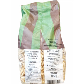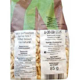 Gluténmentes, natúr puffasztott barna rizs, amely ropogós állagával önmagában nassolnivalóként, vagy ételek kiegészítőjeként fogyasztható.