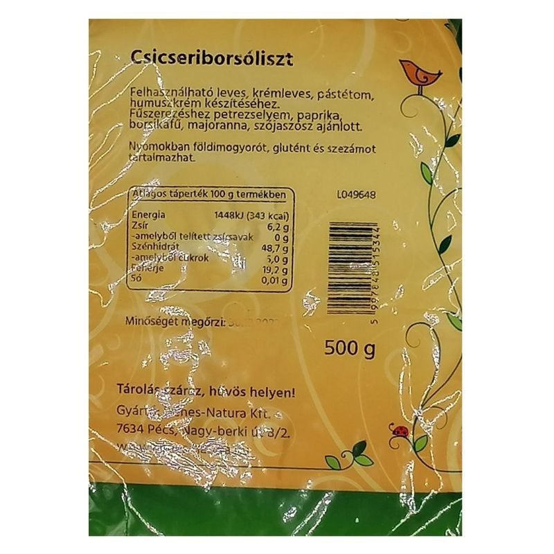 Összetevők: csicseriborsóliszt.