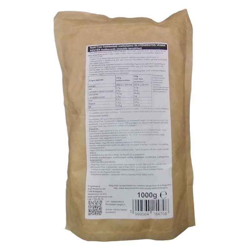 Hozzávalók (495 grammos kenyérhez): 300 g Szafi Free Csökkentett rosttartalmú gluténmentes vegán kenyér lisztkeverék, 3 g porélesztő, 1 g szódabikarbóna, 4 g só, 275 g langyos víz, 20 g frissen facsart citromlé, 1 g olajjal fújjuk vagy kenjük le a tetejét (elhagyható!).
