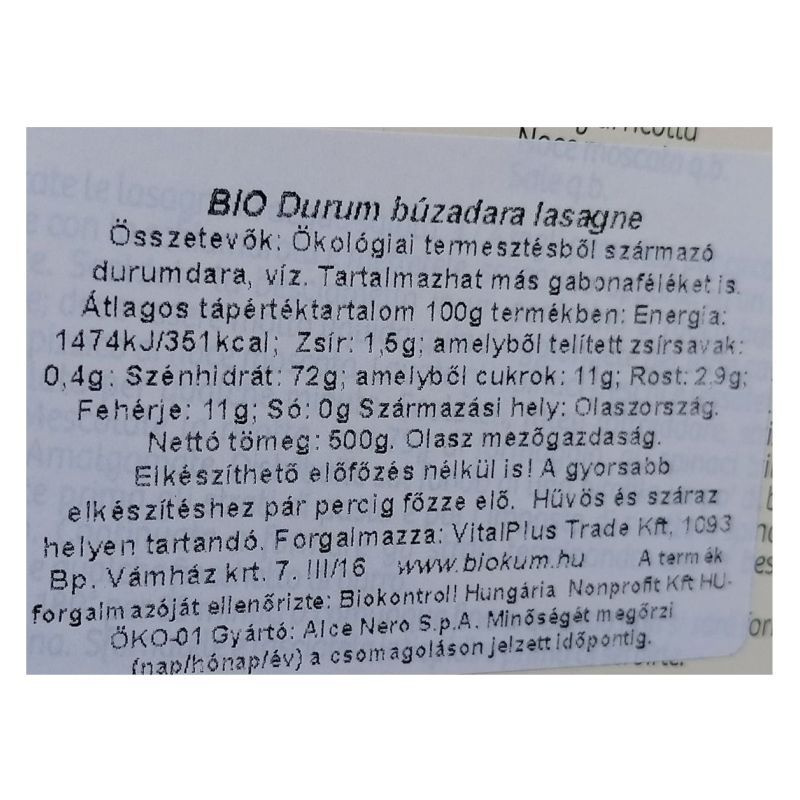 Az Alce Nero bio lasagne 100% olasz durumbúzából készül.
