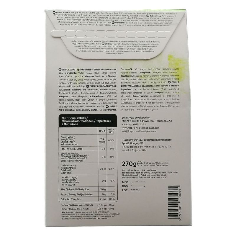 Főtt tészta helyettesítő, magas rosttartalmú, glutén- , cukor- és zsírmentes konjak alapú készítmény 1 perc alatt kész! 1-2 adag.