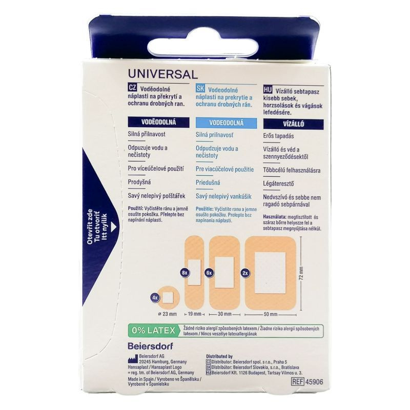 A Hansaplast Universal sebtapaszok a kisebb sebek minden típusának lefedésére alkalmasak. Az anyag légáteresztő és vízlepergető.