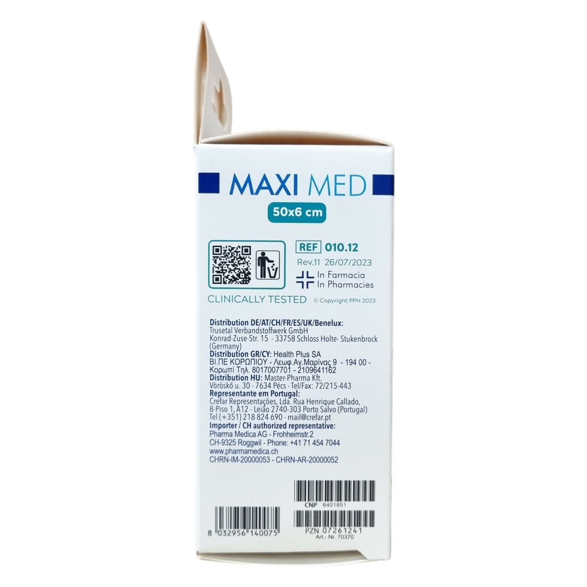 A Maxi Med egy légáteresztő, vágható sebtapasz, mely puha nem szőtt anyagból készült. Központi gézpárnája 0,5%-os klórhexidin-diglukonát fertőtlenítőszerrel van átitatva, amely segít a seb mikroklímájának szabályozásában. A tapasz méretre vágható az egyéni igényeknek megfelelően. Alkalmazása egyszerű: a sebet és környezetét meg kell tisztítani, majd a tapaszt száraz, tiszta bőrre kell helyezni és a ragasztószéleinél lenyomni. A termék latex-mentes, így allergiások számára is megfelelő. Kizárólag szükség esetén cserélje a kötést. Gyártása Olaszországban történik, szakmai forgalmazásban, patikákban kapható.