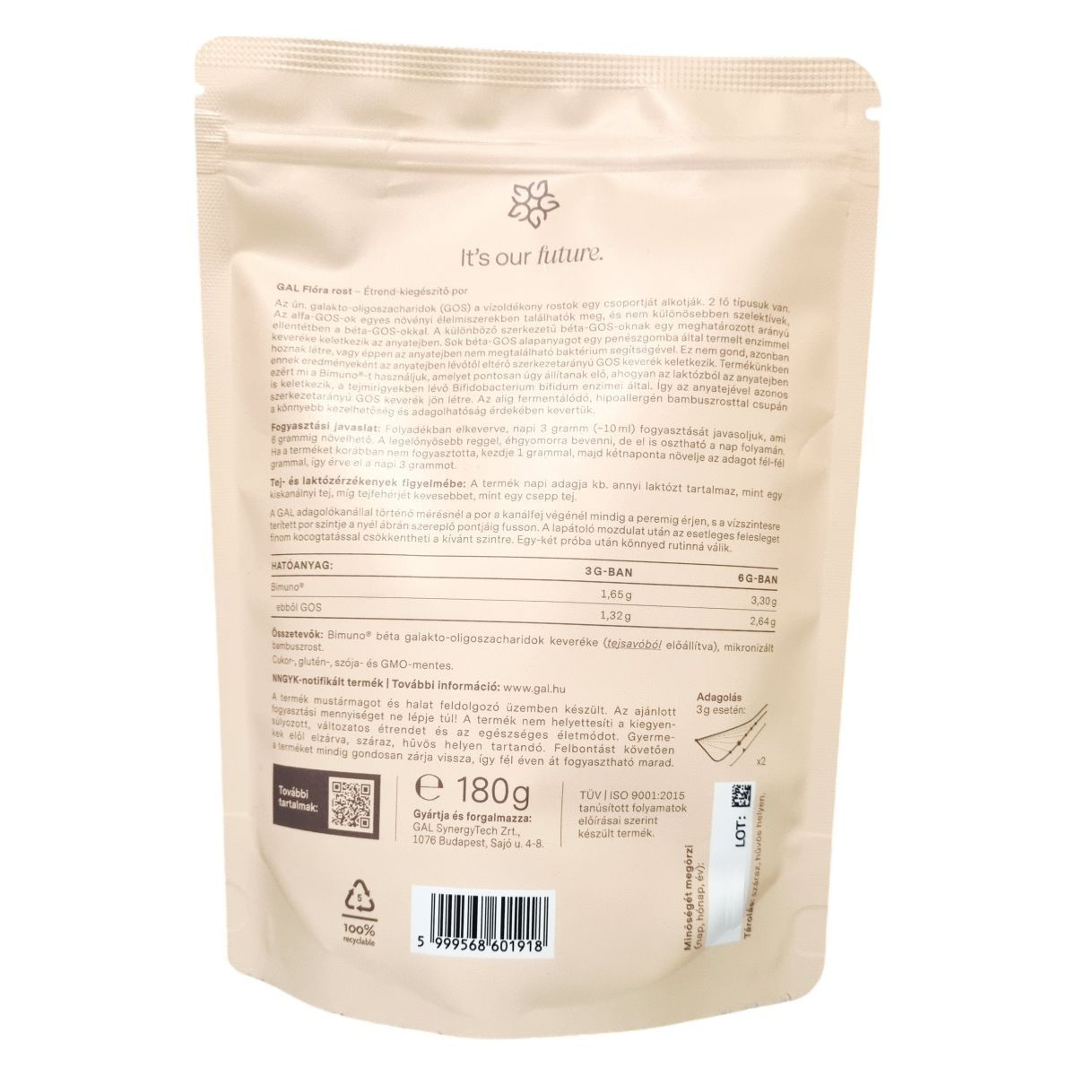 A GAL Flóra rost vízoldékony rostokat tartalmazó étrend-kiegészítő por. A termékben található Bimuno® galakto-oligoszacharid keverék szerkezetaránya megegyezik az anyatejben természetesen előforduló GOS összetételével. A mikronizált bambuszrost a könnyebb kezelhetőséget és adagolhatóságot szolgálja.