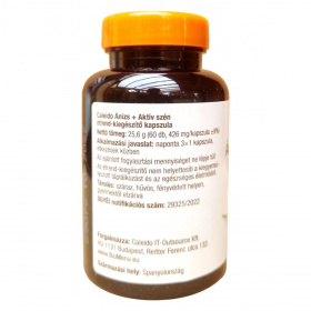 A Caleido Ánizs + Aktív szén kapszula egy speciális étrend-kiegészítő, amely ánizs, köménymag, koriander mag, citromverbéna levél és édeskömény gumó porok kombinációját tartalmazza. Az aktív szén jelenléte segíthet a méreganyagok megkötésében, míg a gyógynövények hozzájárulhatnak az emésztőrendszer támogatásához. A termék Spanyolországból származik, és a Caleido IT-Outsource Kft. forgalmazza. A kapszulák hidroxi-propil-metil-cellulóz alapúak, és a termék nettó tömege 25,6 g.
