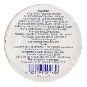 naponta 3 x 3-5 tablettát étkezés után bevenni. Alkalmazásra vonatkozó bővebb tájékoztató a dobozban van elhelyezve!