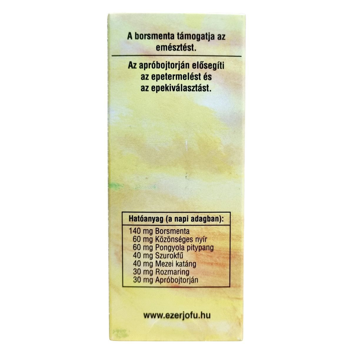 A borsmenta támogathatja az emésztést, míg az apróbojtorján elősegítheti az epetermelést és az epekiválasztást. A termék vizes-alkoholos gyógynövény kivonatot tartalmaz.