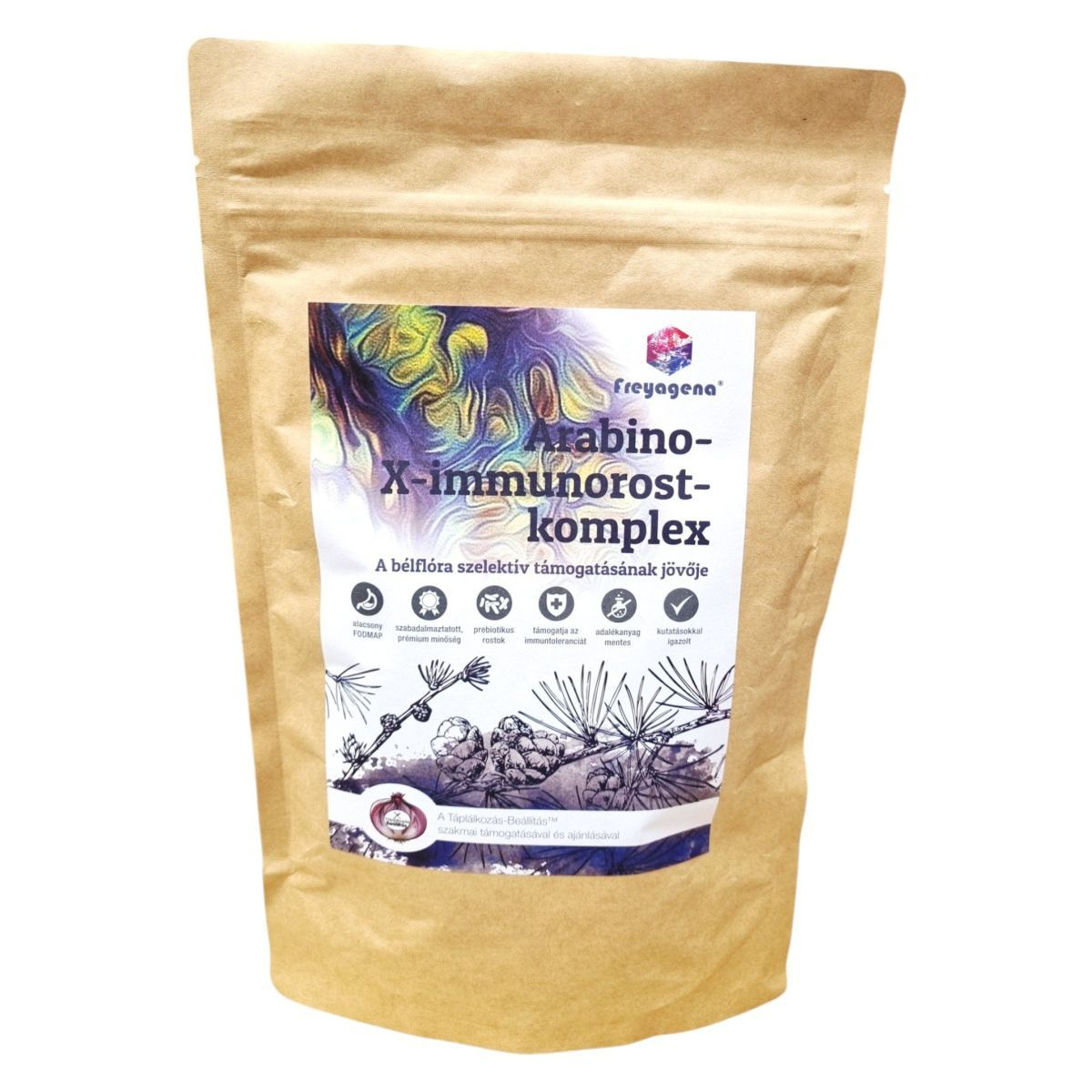 A freyagena Arabino-X-immunorost-komplex a bélflóra szelektív támogatásának jövőjét képviseli. A termék prémium minőségű, szabadalmaztatott prebiotikus rostokat tartalmaz, amelyek hozzájárulhatnak az immunotolerancia támogatásához. A gumiarábikum és a ResistAid arabinogalaktán a bélflóra diverzitását és egyensúlyát táplálhatja, segítve a kellemetlen puffadás és egyéb emésztési panaszok elkerülését. A termék a Táplálkozás-Beállítás™ szakmai támogatásával készült, és különleges összetevőit a legfrissebb kutatások alapján választották ki.