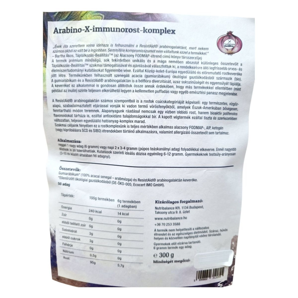 Gumiarábikum (100% acacia senegal – arabmézga) és ResistAid arabinogalaktán keveréke.