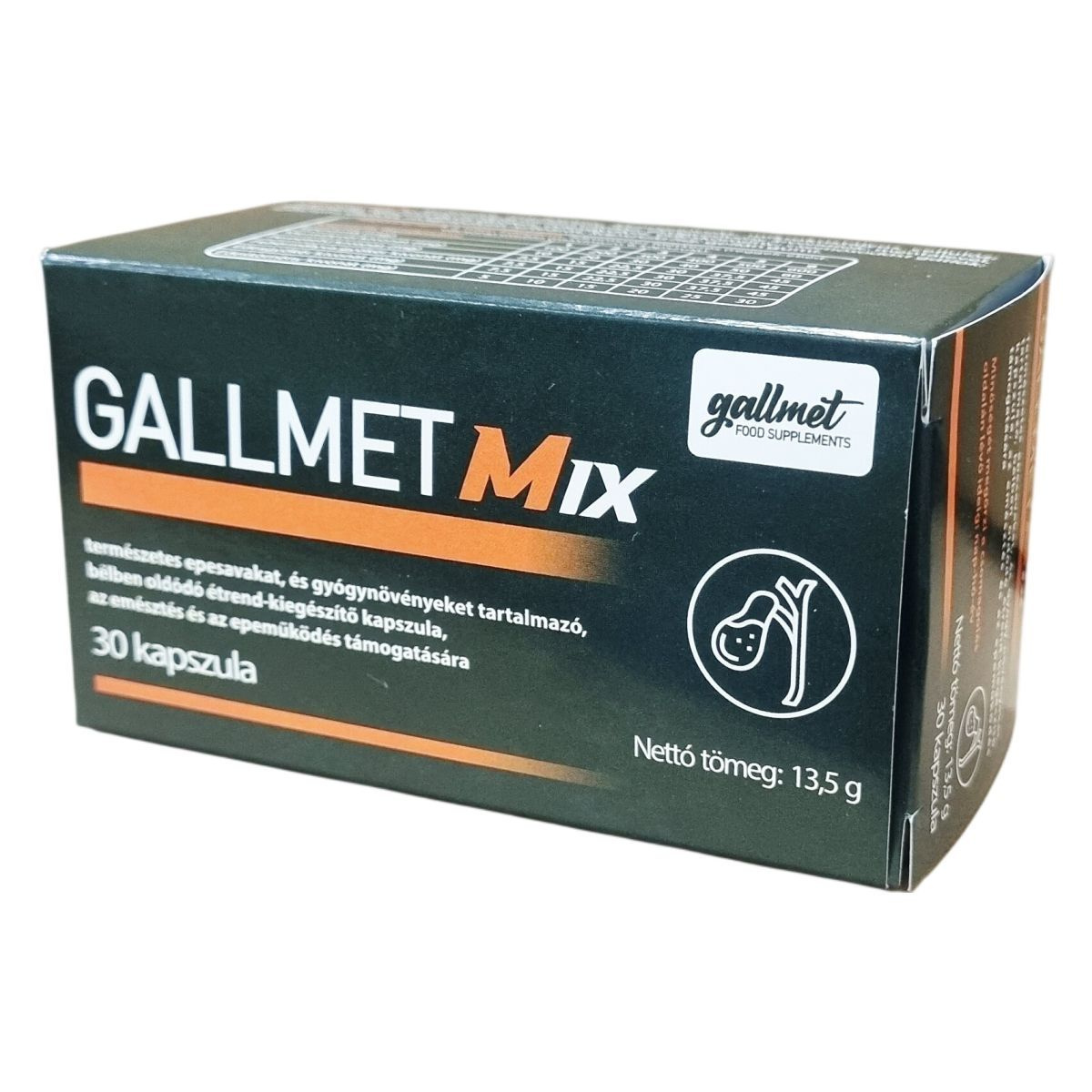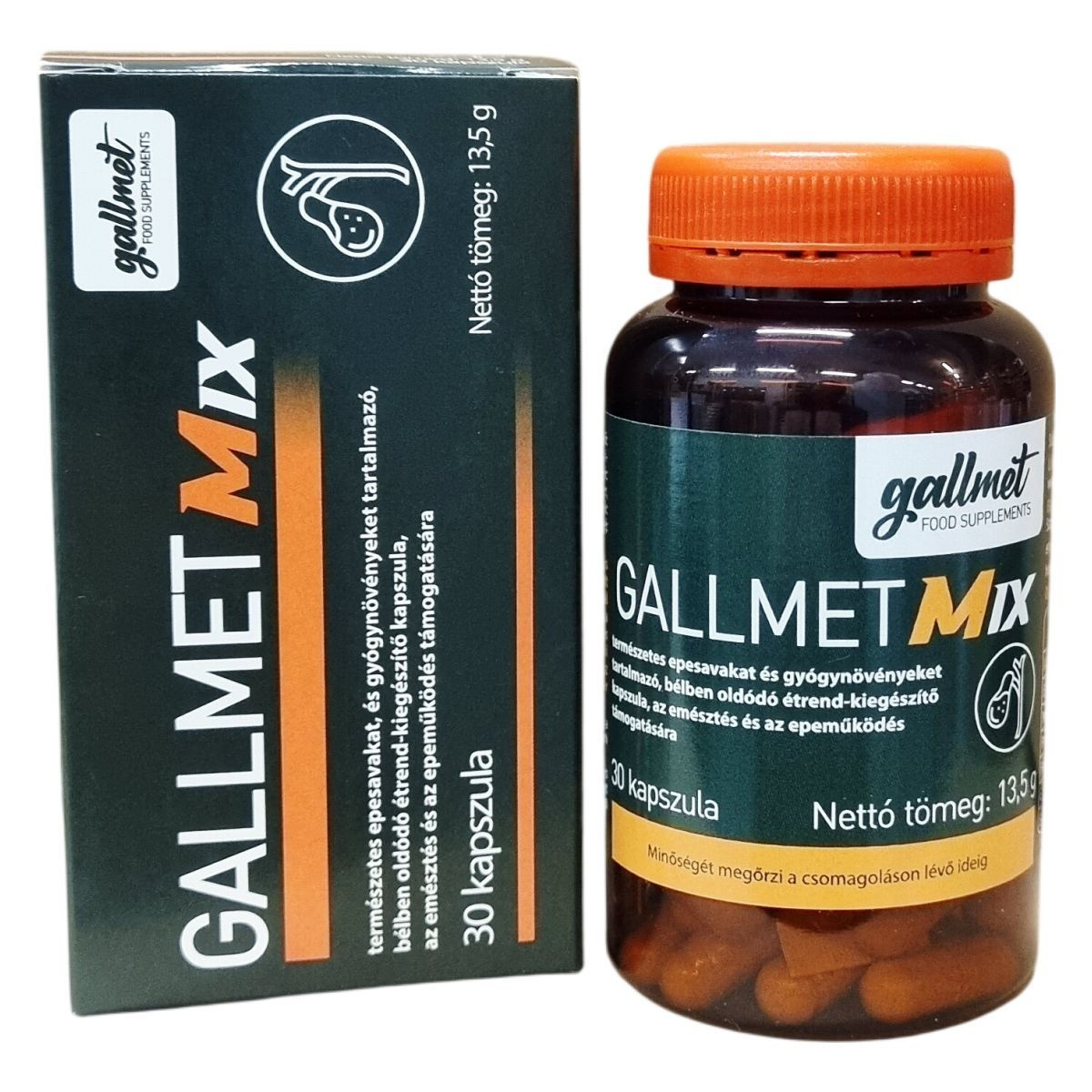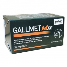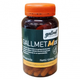 A GALLMET MIX természetes epesavakból és többféle gyógynövény kivonatából álló, bélben oldódó étrend-kiegészítő kapszula, mely az emésztés és az epeműködés támogatására készül. Hatóanyagai között szerepel a liofilizált marhaepe és kivonatok, mint a mentalevél, pemetefű, fehérmályva gyökér, édesgyökér és édeskömény, amelyek hozzájárulhatnak a gyomor- és bélrendszer egészséges működéséhez, az emésztőrendszer támogatásához és az epeműködés normalizálásához. A termék egy nemzetközi laboratóriumi vizsgálaton esett át, amely többek között igazolta a mikrobiológiai tisztaságot, a szennyezőanyagok hiányát, a nehézfémmentességet, valamint a doppingmentességet is. A készítmény használata során figyelembe kell venni az előírt adagolást és az esetleges ellenjavallatokat, mint a heveny eperoham vagy terhesség, továbbá ajánlott a használat megkezdése előtt szakemberrel történő konzultáció.