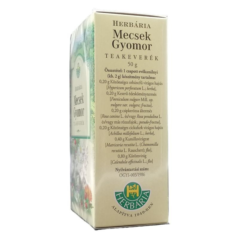 E recept nélkül kapható gyógyhatású szerrel ön enyhe, múló panaszokat kezelhet orvosi felügyelet nélkül. Az optimális hatás érdekében azonban, elengedhetetlen készítmény körültekintő, előírásszerű alkalmazása. Tartsa meg a betegtájékoztatót, mert a benne szereplő információkra a későbbiekben is szüksége lehet. Gyógyszernek nem minősülő gyógyhatású készítmény, melynek hatását irodalmi adatok bizonyítják. Mi a hatóanyaga? 1 csapott evőkanál készítmény (kb. 2 g) 0, 80 g Körömvirágot (Calendulae flos), 0, 40 g kamilla-virágzatot (Matricariae flos), 0, 20 g Közönséges cickafark virágos hajtást (Millefolii herba), 0, 20 g Csipkerózsa áltermést (Rosae pseudo-fructus), 0, 20 g Keserű édeskömény termést (Foeniculi amari fructus), 0, 20 g Közönséges orbáncfű virágos hajtást (Hyperici herba) tartalmaz. Mit tartalmaz még a készítmény? A teakeverék a gyógynövényeken kívül mást nem tartalmaz. Mikor ajánlott a készítmény alkalmazása? Gyomorbántalmak esetén, gyomor-, és nyombélfekély megelőzésére, a gyógyszeres kezelés kiegészítésére alkalmazható gyulladáscsökkentő teakeverék. Mikor nem ajánlott a készítmény alkalmazása? Ne alkalmazza a készítményt, ha az alkotórészekkel - főleg fészkesvirágzatúak -szembeni egyéni túlérzékenysége van. Mit kell tudnia az alkalmazás megkezdése előtt? Fényérzékenység esetén, a teakeverék alkalmazása alatt tartózkodni kell az erősfényhatásoktól (napozás, szolárium). Alkalmazhatják-e a készítményt gyermekek? A teakeverék alkalmazása gyermekeknek nem ajánlott. Alkalmazható-e a teakeverék más gyógyszerekkel? A teakeverék alkalmazása - orbáncfű tartalma miatt - egyidejűleg nem ajánlott a következő gyógyszerekkel, mert azok hatását módosíthatja: INDINAVIR, HIV-, és epilepszia ellenes szerek, kumarin típusú antikoagulánsok (pl. : Syncumar), szájon átszedhető fogamzásgátlók, Digoxin, cyclosporin (pl. : Sandimmun) és theophyllin tartalmú készítmények. Fogyasztható-e a tea terhesség és szoptatás ideje alatt? A teakeverék hatóanyagai átjuthatnak a magzatba, ill. az anyatejjel kiválasztódva a csecsemőbe, ezért ezen élethelyzetekben nem javasolt a tea fogyasztása. Hogyan és milyen adagolásban kell a teát fogyasztani? Egy csészényi (kb. 2, 5 dl) forró vízzel 1 csapott evőkanálnyi (kb. 2 g) tea keveréket leforrázunk, majd lefedve 10-20 percig állni hagyjuk. Leszűrve mézzel édesítve, langyosan, kortyonként fogyasztható étkezés közben vagy után, naponta 2-3 csészényit. Milyen nem kívánt hatást válthat ki a készítmény? Ritkán, világos bőrű egyéneknél erős fényhatásokra (napozás, szolárium) allergiás bőrreakció (bőrpír, viszketés, bőrkiütés) jelentkezhet. Mire kell még ügyelnie a készítmény alkalmazása során? A teakeveréket gyermekek elől el kell zárni! Mennyi ideig alkalmazható a készítmény? 1-2 hónapig kúraszerűen lehet fogyasztani. Azonban ha tünetei nem javulnak, ill. rosszabbodnak, hagyja abba a tea fogyasztását.