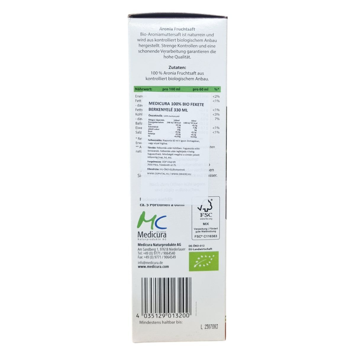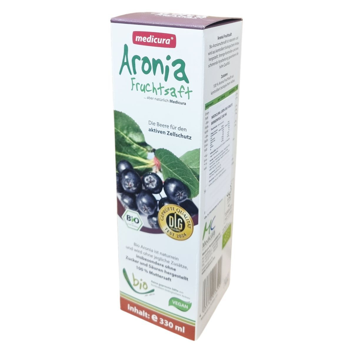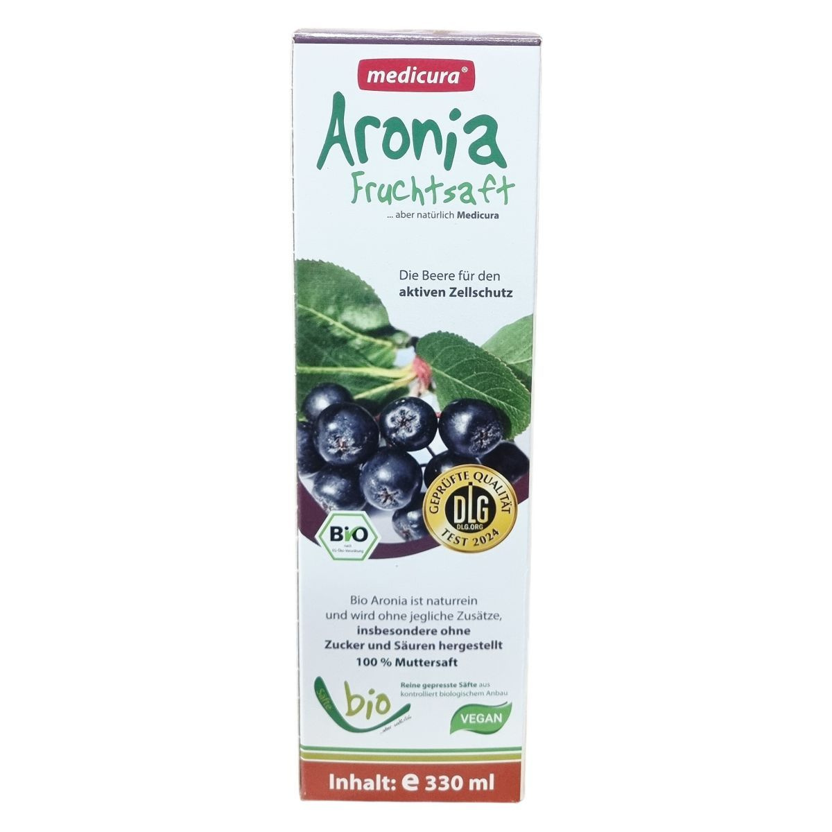 A Medicura Bio Aronia gyümölcslé kizárólag ellenőrzött biogazdálkodásból származó, természetes fekete berkenyéből készül, melyet szigorú ellenőrzések és kíméletes feldolgozási eljárások kísérnek a magas minőség érdekében. Ez a 100% tiszta préselt gyümölcslé semmilyen adalékanyagot, különösen cukrot vagy savakat nem tartalmaz, így tökéletes választás azok számára, akik természetes és egészséges italt keresnek. A termék vegan és bio minősítésű, csomagolása 330 ml, körülbelül 5 adag 60 ml-enkénti fogyasztásra.