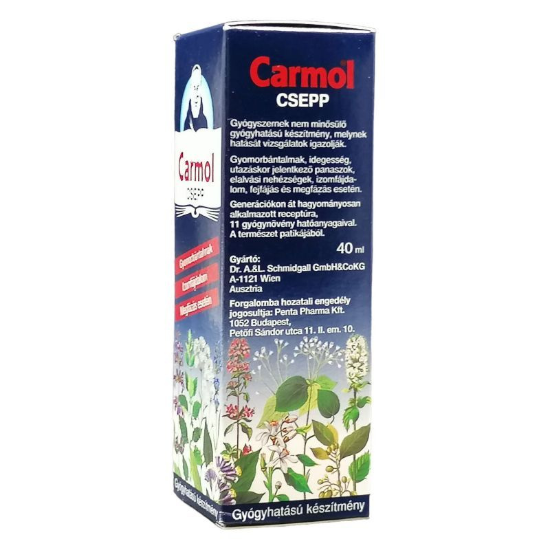 Használata: Puffadás, teltségérzet, emésztési zavarok, fejfájás esetén: 10-20 csepp Carmol-t kockacukorra, teába vagy vízbe csepegtetni. Idegi eredetű elalvási nehézség esetén: lefekvés előtt 10-20 csepp Carmol-t egy csészényi teába vagy meleg cukros vízbe csepegtetni. Utazáskor jelentkező panaszok esetén: 2-3 csepp Carmol kockacukorra vagy vízbe csepegtetve oldhatja a feszültséget. Idegesség esetén: naponta 3-szor 10-20 csepp. Megfázás esetén: naponta maximum 5-ször 10-20 csepp Carmol-t kockacukorra vagy teába csepegtetni. Fejfájás esetén: belsőleges alkalmazás mellett a homlokot, halántékot és tarkót bedörzsölni. Végtagfájdalom esetén: a fájó testrészeket naponta legfeljebb 5-ször bedörzsölni és melegen tartani. Légúti megbetegedések esetén: 20 csepp Carmol-t forró teába csepegtetni és a gőzöket belélegezni (inhalálni), végül a teát lassan meginni. A mellkas és hát lefekvés előtti bedörzsölése könnyítheti a légzést. Bőrviszketés, rovarcsípés esetén: az érintett területekre 1-2 csepp Carmol cseppenteni (nem kell bedörzsölni).