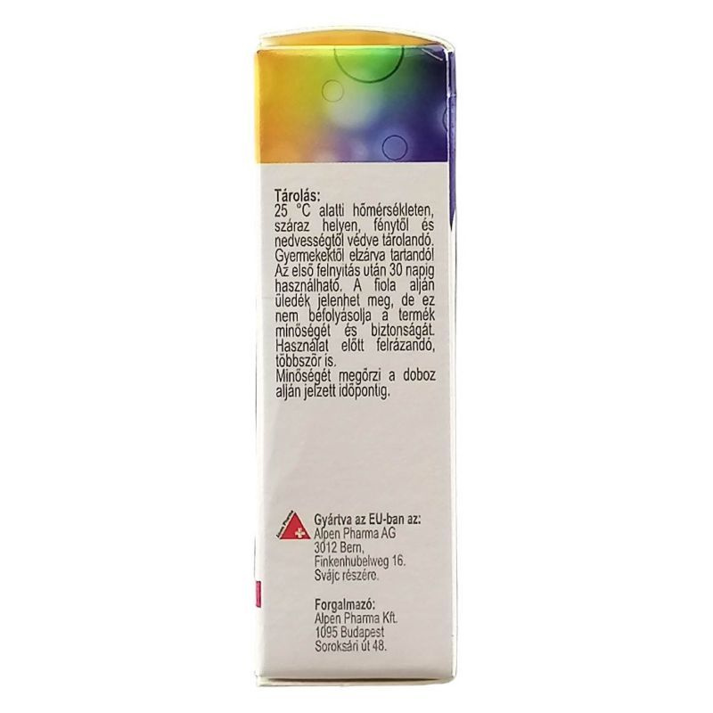 25 °C alatti hőmérsékleten, száraz helyen, fénytől és nedvességtől védve tárolandó. Gyermekektől elzárva tartandó. Az első felnyitás után 30 napig használható. A fiola alján üledék megjelenhet, ez nem befolyásolja a termék minőségét és biztonságát. Használat előtt alaposan felrázandó, többször is. Minőségét megőrzi a doboz alján jelzett időpontig.