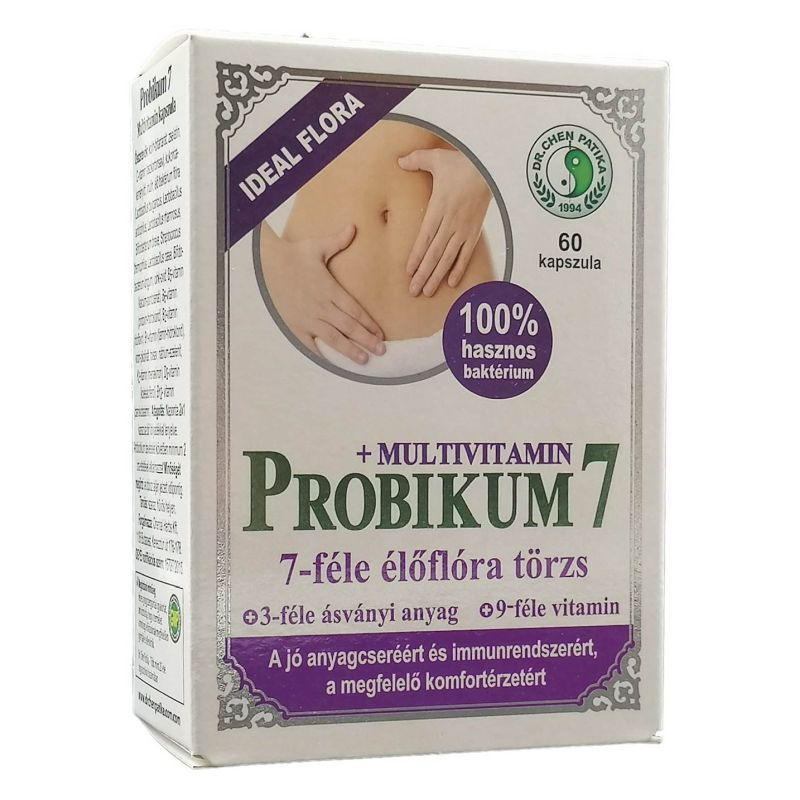 Élőflórát, inulint, vitaminokat és nyomelemeket tartalmazó speciális gyógyászati célra szánt tápszer. A Probikum7 élőflórás Multivitamin alkalmazása javasolt antibiotikus kezelést követően és bélrendszeri fertőzések után aktív baktériumok, egyes vitaminok és ásványi anyagok pótlására. Adagolás: Napi 2 x 1 szükség esetén 2 x 2 kapszula bőséges folyadékkal lenyelve, reggeli előtt és vacsora után.