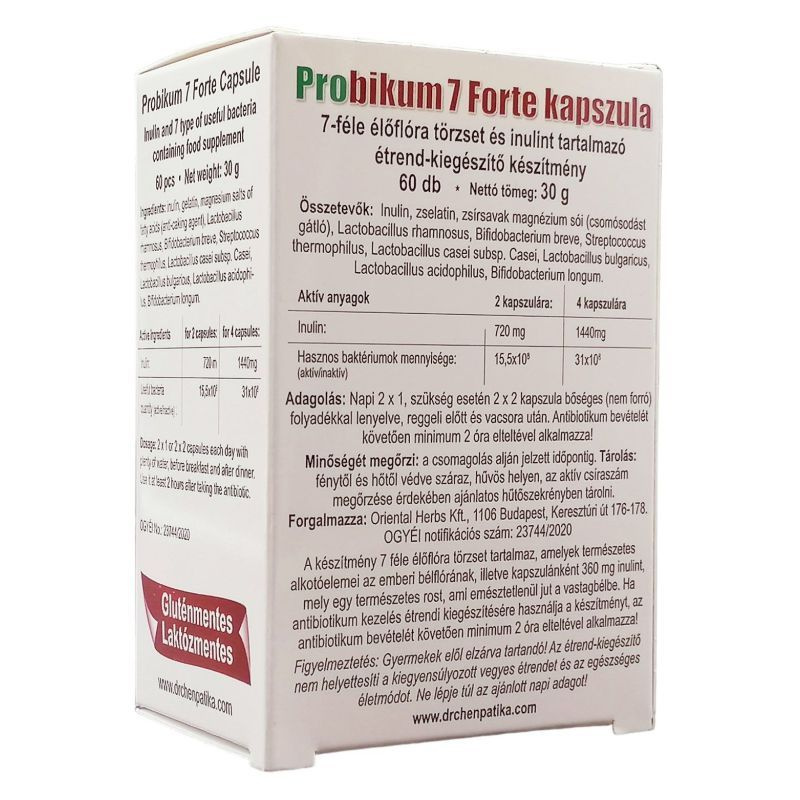 Hasznos baktériumokat és inulint tartalmazó készítmény. Az inulin természetes vízben oldódó rost emésztetlenül jut a vastagbélbe. A bélflóra egyensúlyzavara valószínűleg nem egyetlen baktériumtörzs számának megváltozása miatt következik be. Ilyenkor a több törzset is tartalmazó készítmény alkalmazása nagyobb sikerrel jár. A Probikum 7 Forte kapszula egyszerre tartalmazza a manapság leggyakrabban alkalmazott, a bélflórában is előforduló kedvező tulajdonságú baktériumokat.